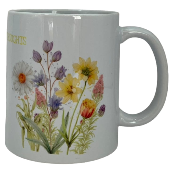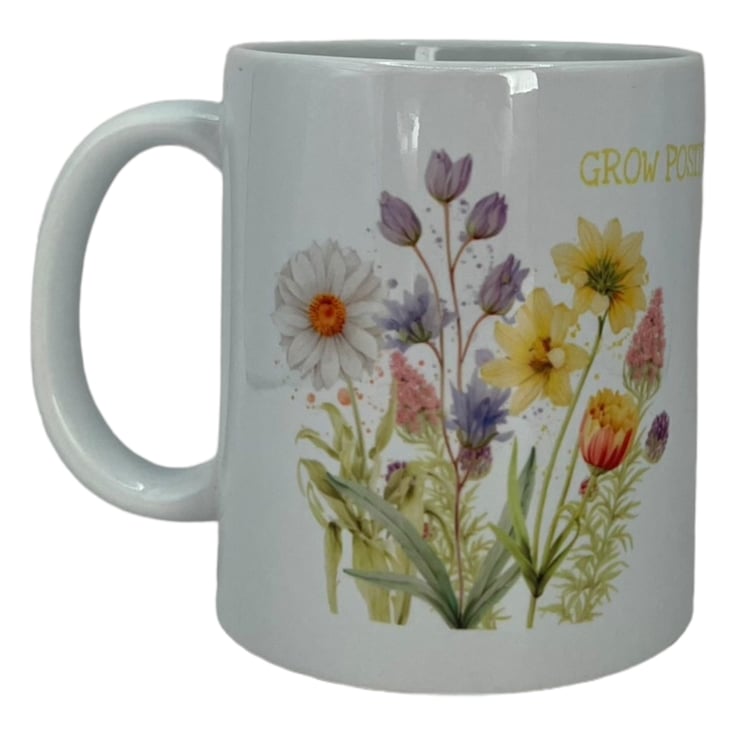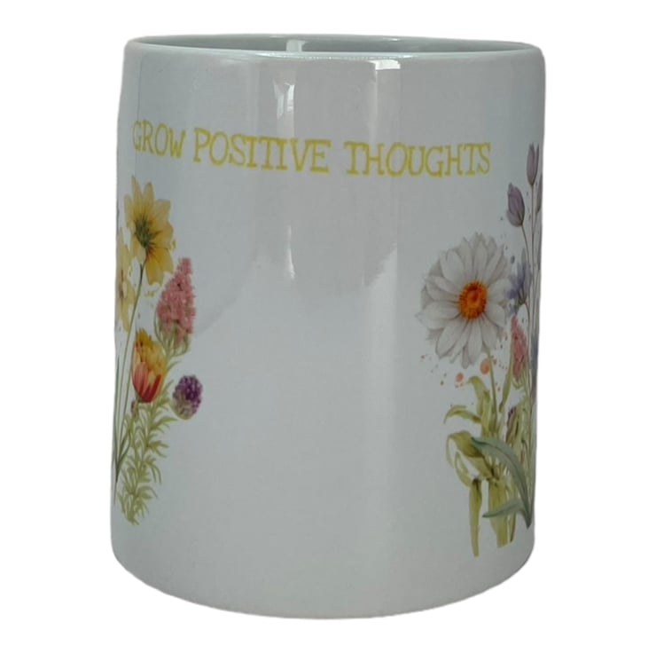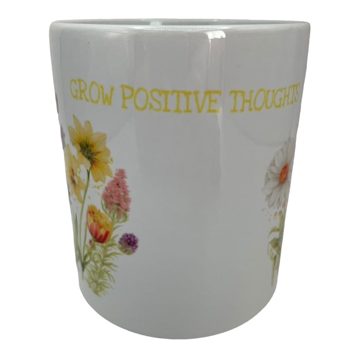This beautiful wildflower mug has the words “Grow Positive Thoughts” This motivational mug with its beautiful design of flowers is the perfect way to start your day with a positive mindset. The vibrant colours and intricate details of the flowers will instantly uplift your spirits and bring a touch of nature into your morning routine.