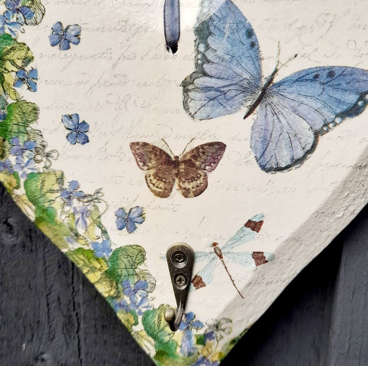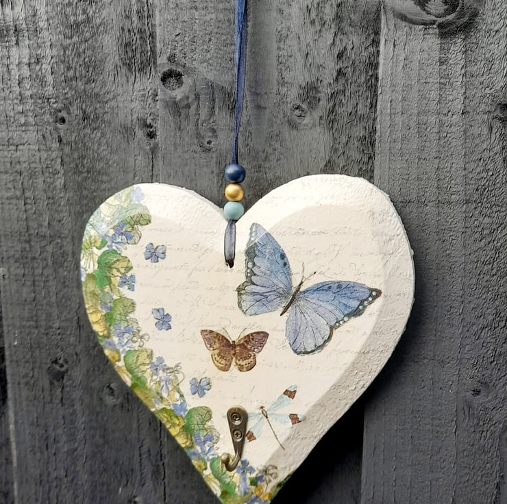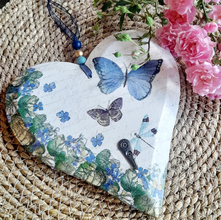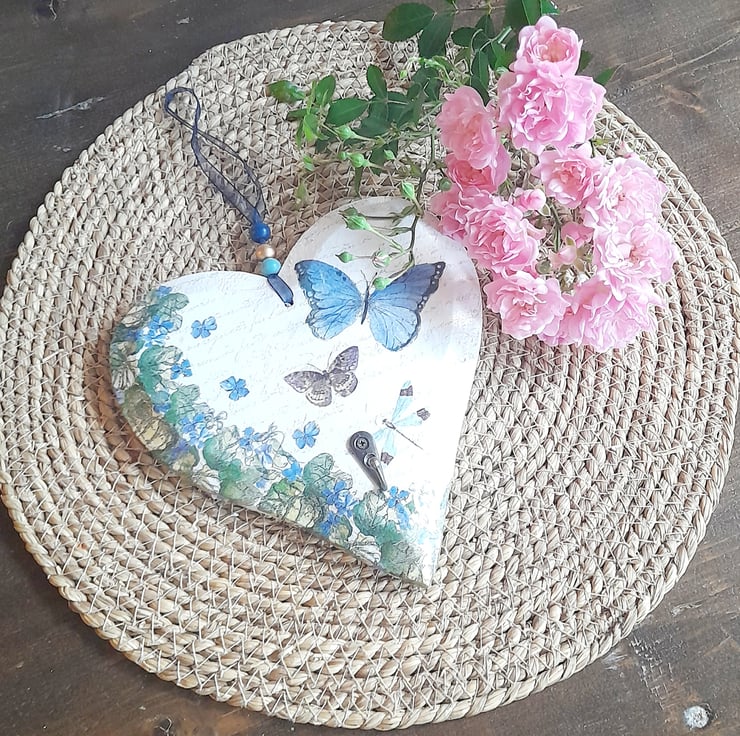 This lightweight Wooden Heart has been painted & then decoupaged to create a pretty scene of purple florals & Butterflies.