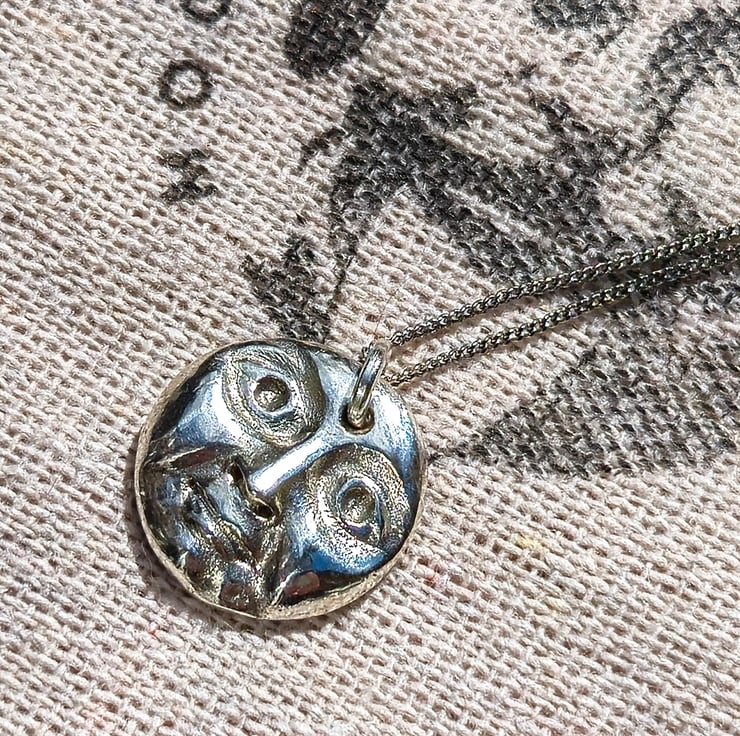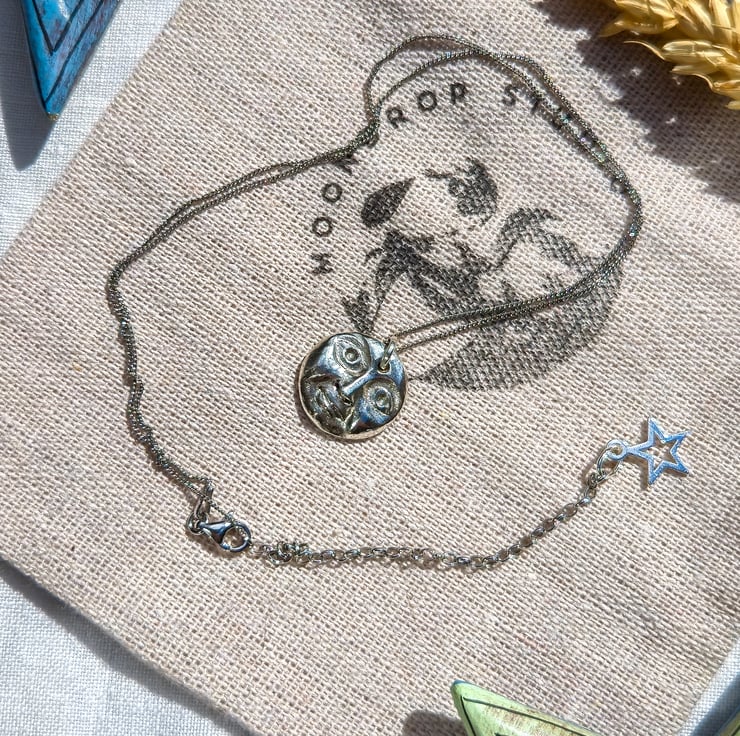 This necklace has been individually hand-cast using recycled solid fine silver. We've strung this pendant from a 18 inch sterling silver chain, which has a slight extension and ends in a dainty sterling silver star charm.