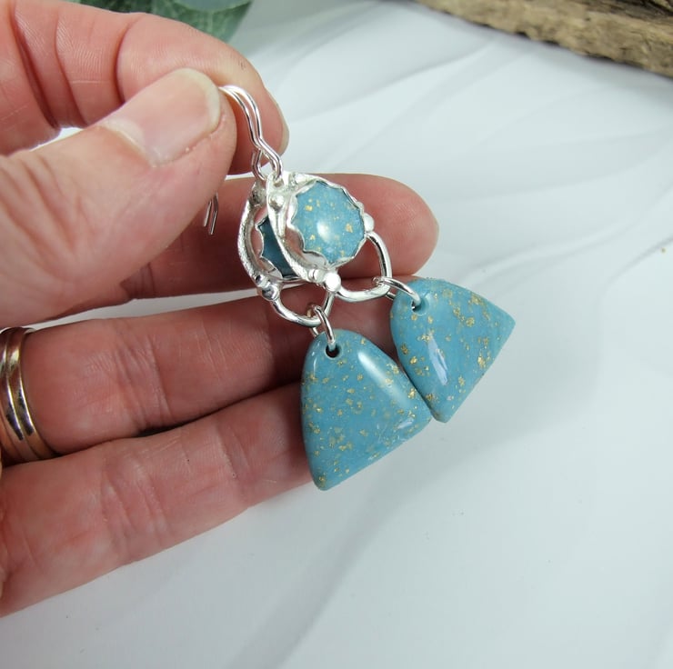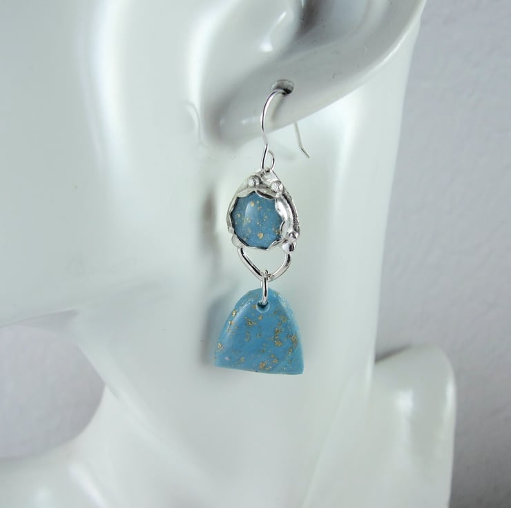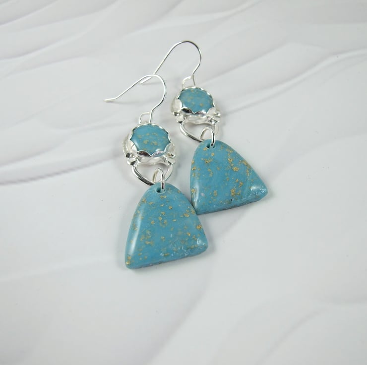 Sterling Silver Dropper Earrings with Turquoise polymer clay with gold flecks. These are end of line as I no longer work with polymer clay.