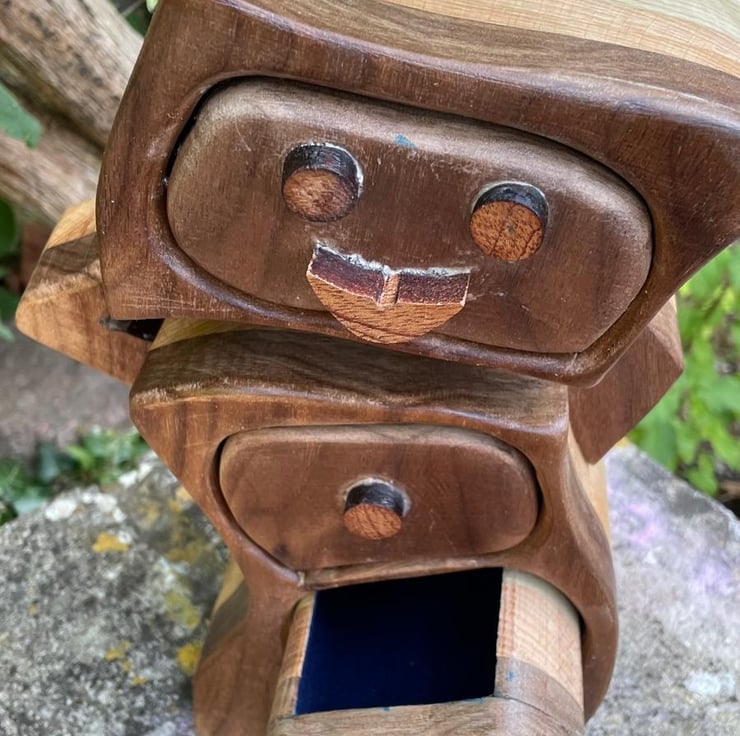 Perfect as a jewelry box, ring holder, or a unique ornament for your living space, this playful wooden companion brings a touch of joy and practicality to any room. Don’t miss the chance to add this adorable piece to your collection!
