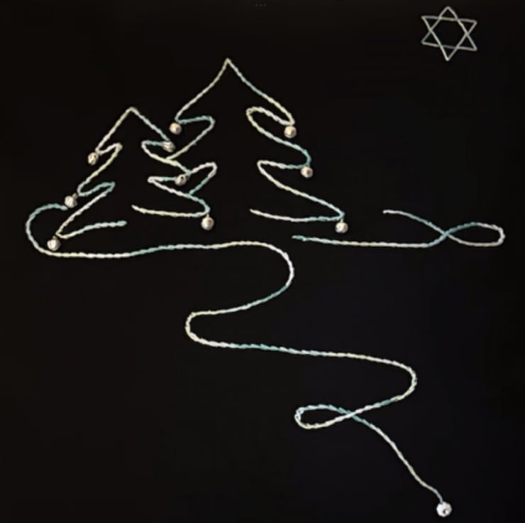 A guiding star, a shiny white, silver and glass bead and a host of tiny silver coloured jingle bells on each of the two trees add extra details and shine to the snowy scene.