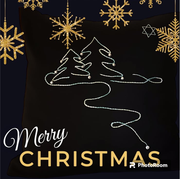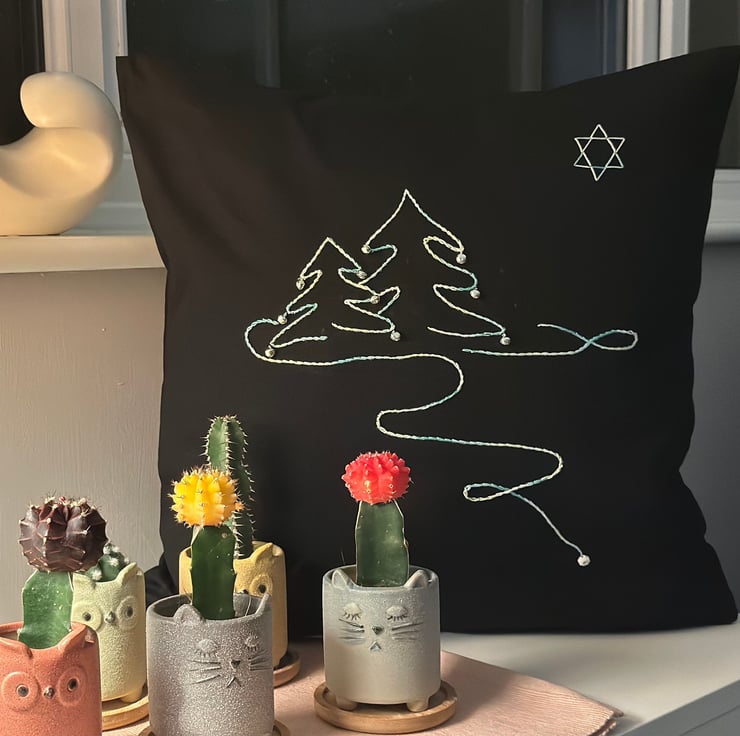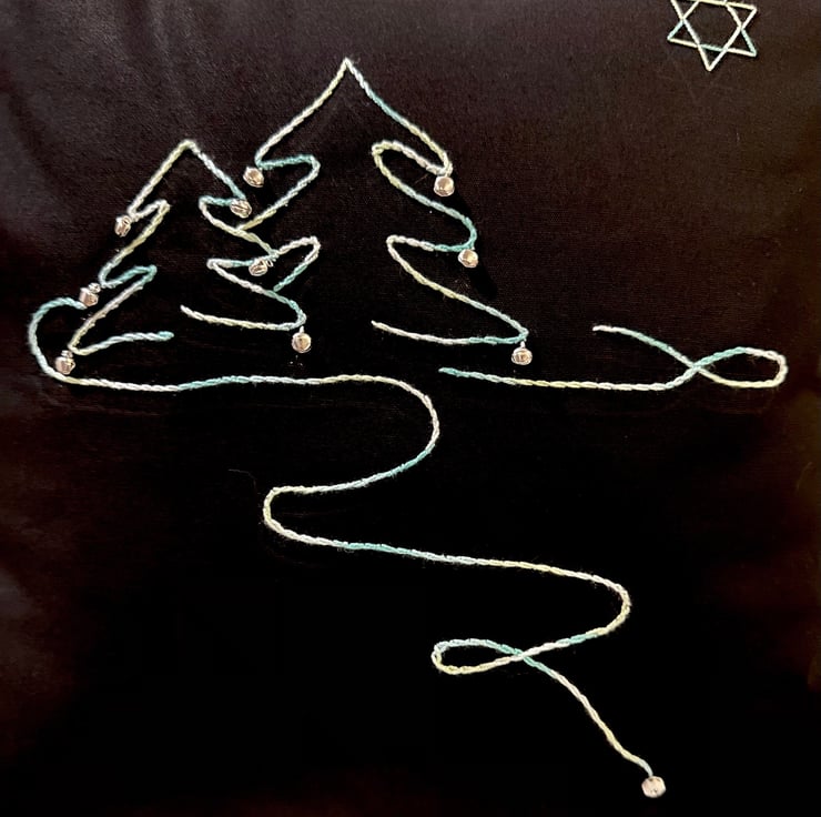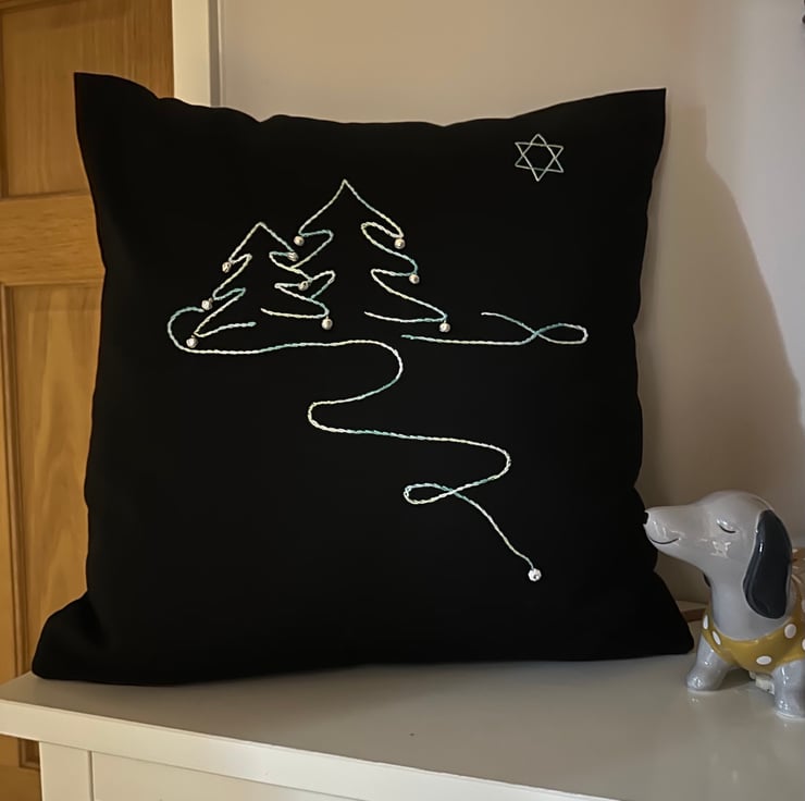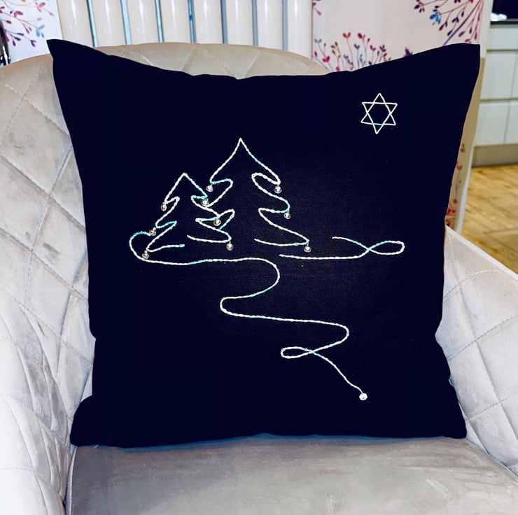 A stunning alternative to a traditional red and gold Christmas theme, this large cushion cover is beautifully hand embroidered with an abstract Christmas winter scene.