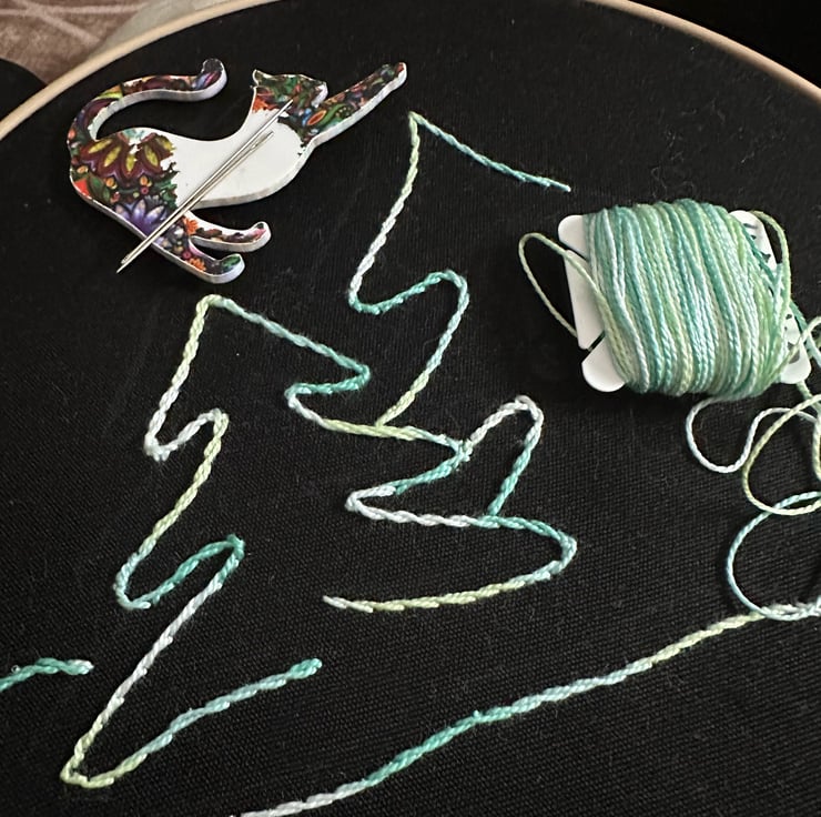 Using a subtle colour changing thread to create hues and texture I’ve used DMC quality colourfast cotton Perle thread which has a subtle sheen and a thicker texture.
