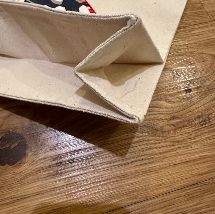 8oz natural cotton canvas, long handles for carrying over the shoulder. The large gusset gives this bag a much greater capacity than you might expect. This bag is capable of carrying everything you might need in the course of a normal day.