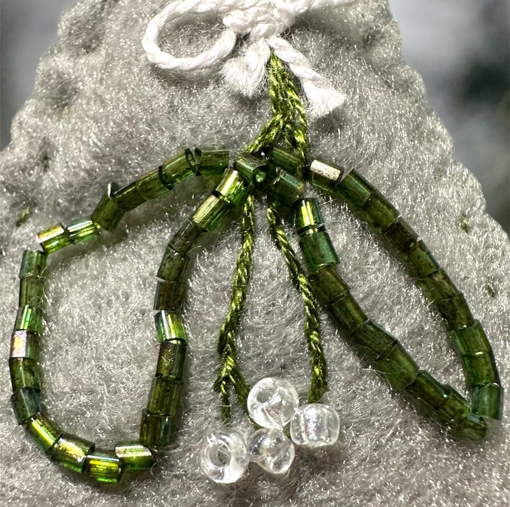 You will receive this beautiful pair which features one of each. Holly with bright green DMC threads and red beads for the berries. The other is of mistletoe with the tiniest glass tube beads for the leaves and white round beads for the berries.