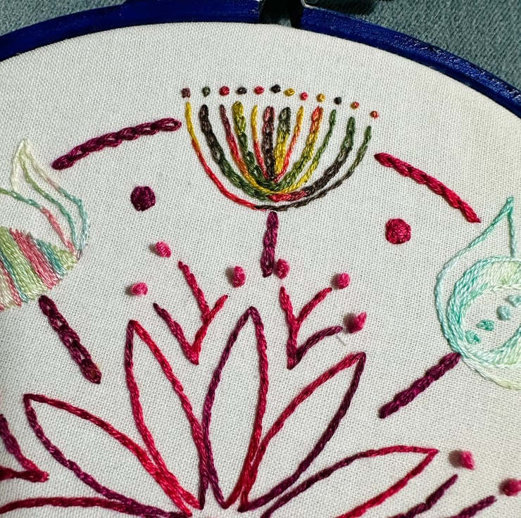 Your purchase includes the completed embroidery as seen, 100% drawn and sewn by hand. Embroidery is made on 100% cotton, using quality, colour fast DMC cotton thread. Each individual image is done in a complementary colour range and with assorted stitches for a unique effect.