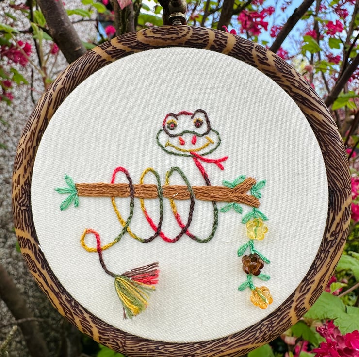Your purchase includes a fully completed embroidery, 100% drawn and embroidered by hand. Embroidery is made on pale cream cotton using quality, colour fast DMC cotton thread.