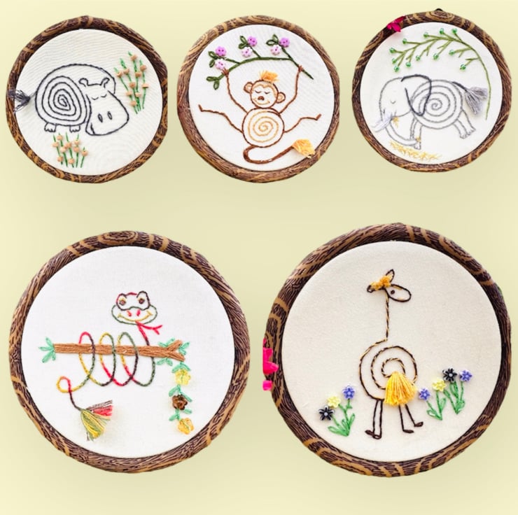 Super fun caricatures each designed to have a spiral body, a bushy tail and or hair or a fluffy rattle tail. Each design is also embellished with tiny glass seed beads, wooden beads or flowers to keep the theme running throughout the set.