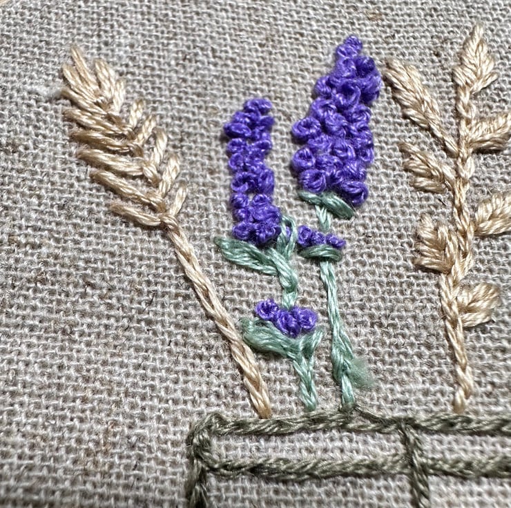 Lovingly hand stitched with quality colourfast DMC cotton in assorted soft subtle colours with a splash of vibrancy from the purple lavender.