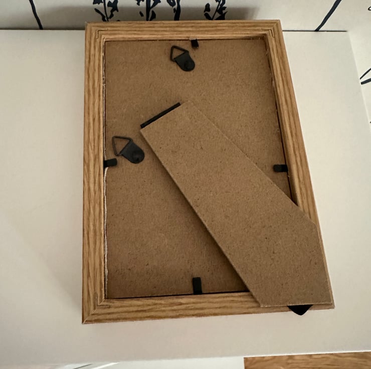 Mounted in a portrait orientated, deep set box frame: 17.5 x12cm with a 2.5cm depth. Can be hung on the wall or has a stand.