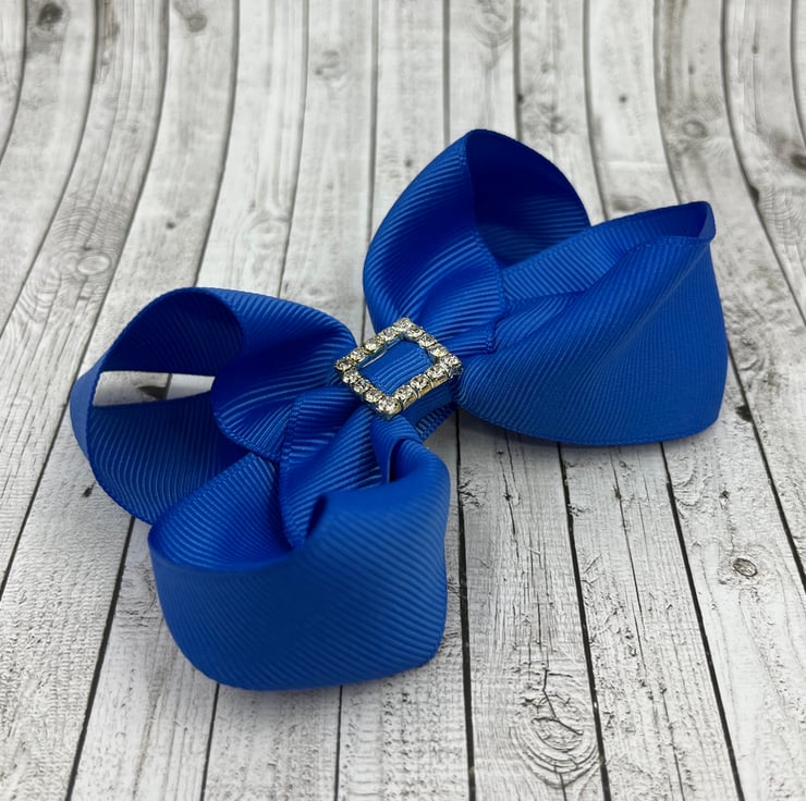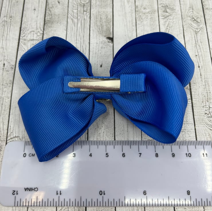 Our boutique bows are handmade here in our little shop. They are made from the best quality Grosgrain ribbon. These bows are really elegant and look extremely smart and go well with the Royal Blue School Uniform.