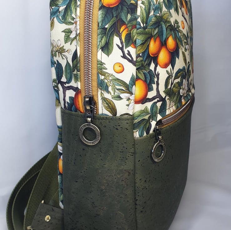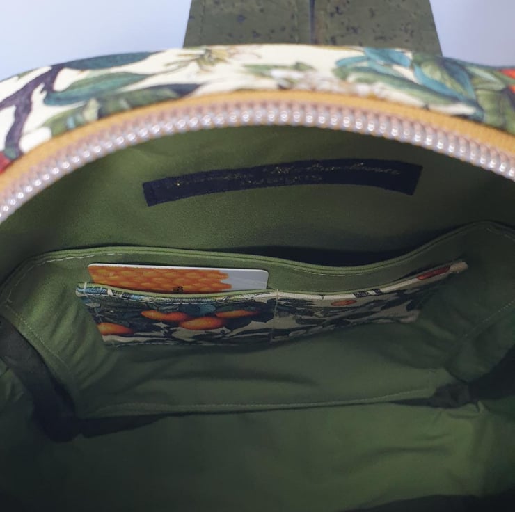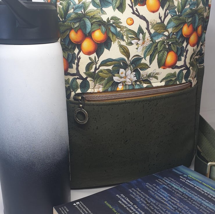Versatile and practical alternative to a backpack. This Sling bag is made in water resistant cotton canvas and cork. It can be worn across either shoulder due to the twin 'D' rings, at the back or across your front.