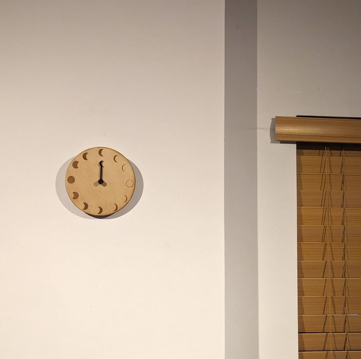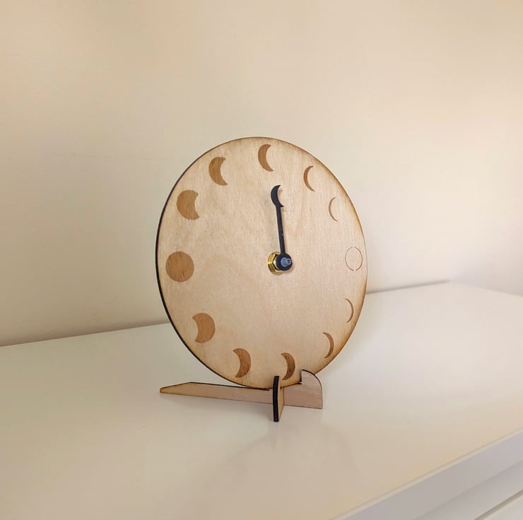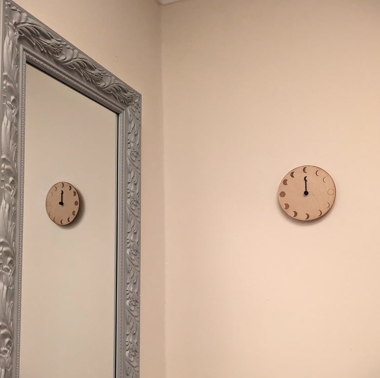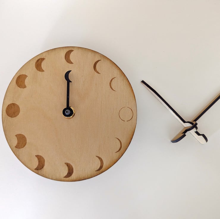 This Moon Phase movement follows a 29.5 day lunar cycle, perfect gift for a stargazing enthusiast, or a seagoer wanting to keep track of spring/neap tides. The clock is 15cm in diameter and 3mm thick with a wall hook mounting.