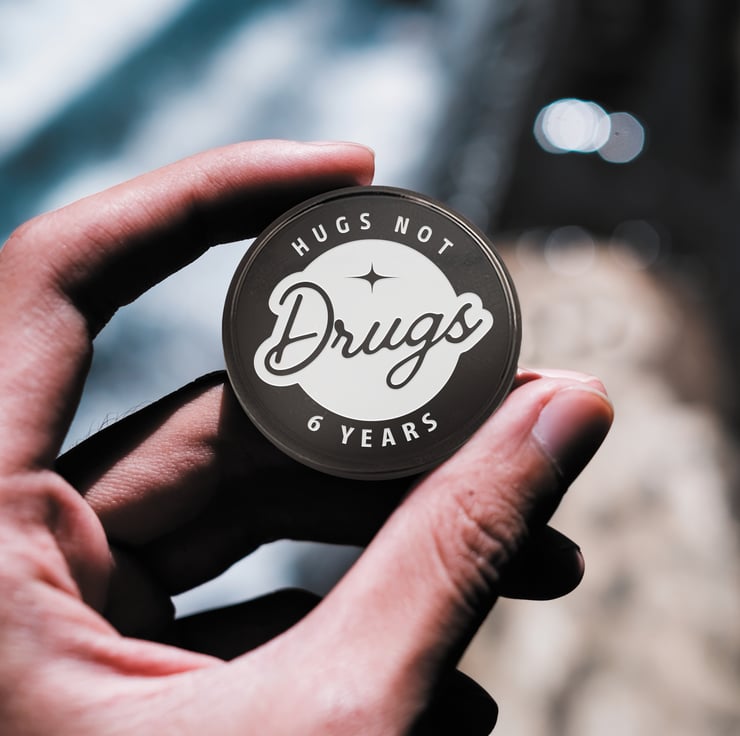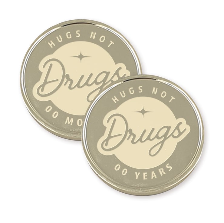 Hugs Not Drugs - Script: Personalised Narcotics Anonymous Chip Custom Milestone