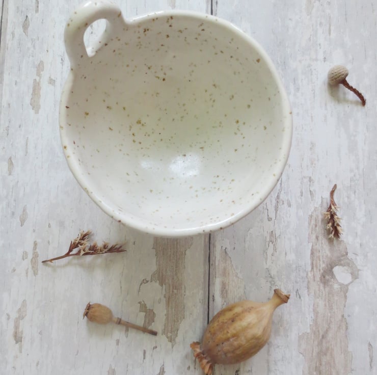 Fired to stoneware temperature (1280C) with a shiny white glaze.