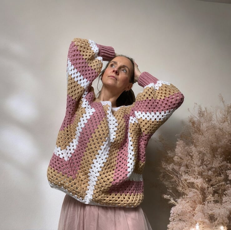 Crochet Boho Oversized Jumper / Granny Square Sweater / Handmade Top.