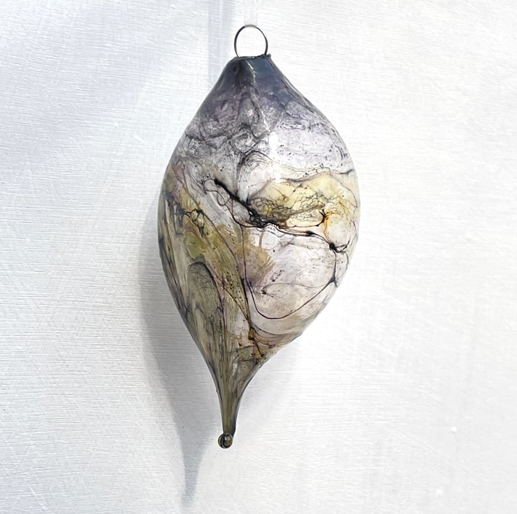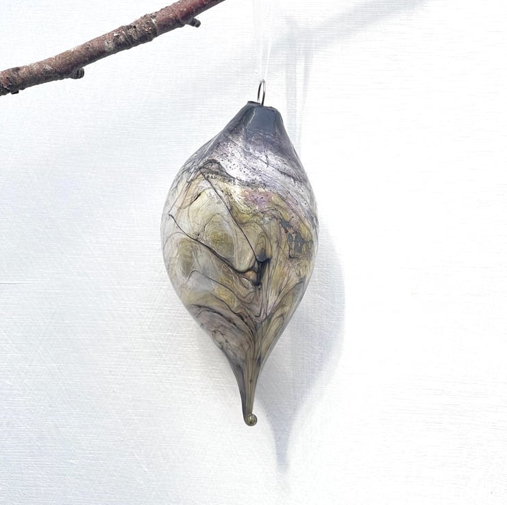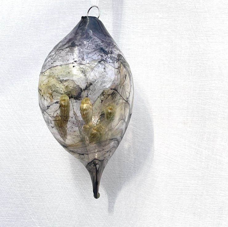Beautiful lamp worked blown glass bauble. This bauble contains dried quaking grasses grown from seed in my Whitstable garden.