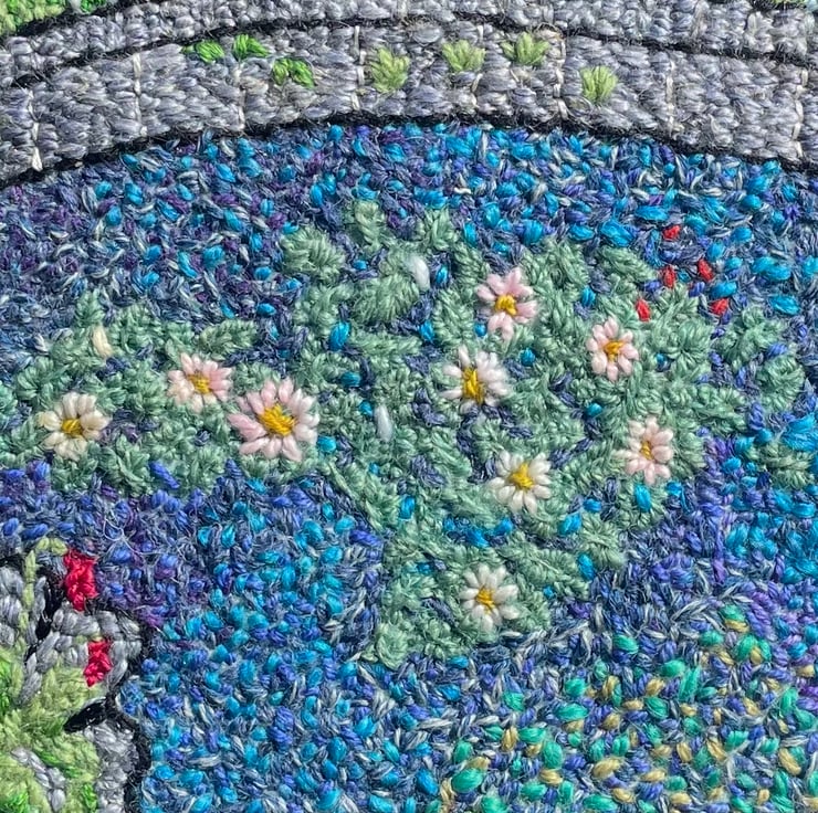 Hand embroidered by me using various wool yarns on to a wool felt background.