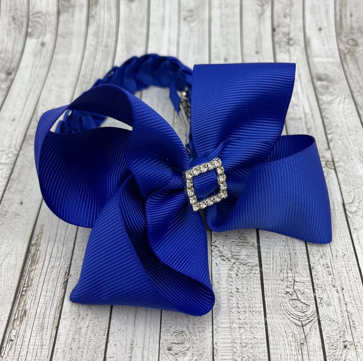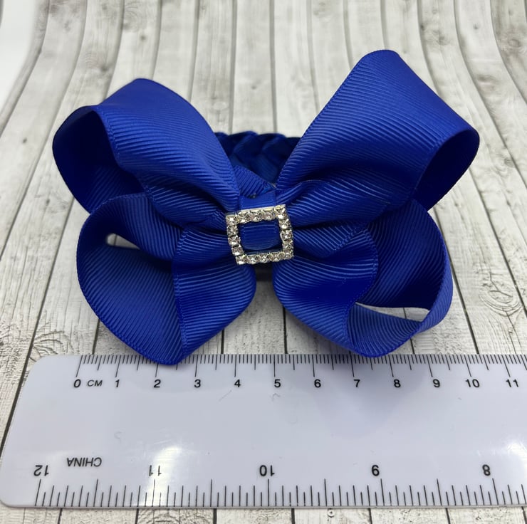Our Cobalt Blue Bun-wrap is handmade here in our little shop. It is made from the best quality Grosgrain ribbon. The Bun-wrap is really elegant and looks extremely smart wrapped around your little one's bun. It clips in at the front of the bun then the tail wraps around the bun and clips beneath the bow at the front to complete the look, tail is 21 cm.