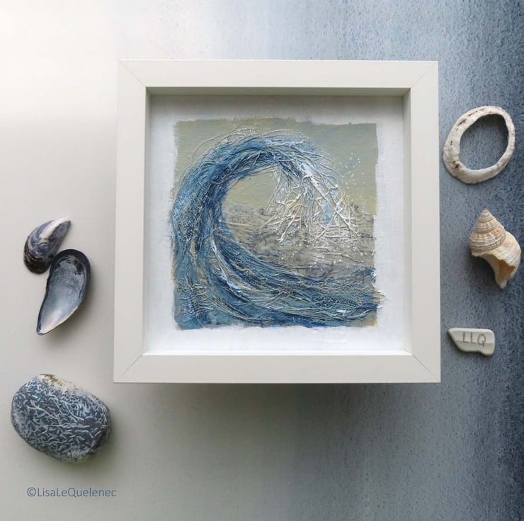 Using artist quality acrylic paint on canvas board with collage elements that heighten the textures, this painting is 6x6inch (15x15cm) and comes unmounted and unframed. It is suitable for framing or can happily stand propped up on a shelf. The painting will be shipped in protective tissue, sealed in a cellophane bag and nestled in between card for added protection.