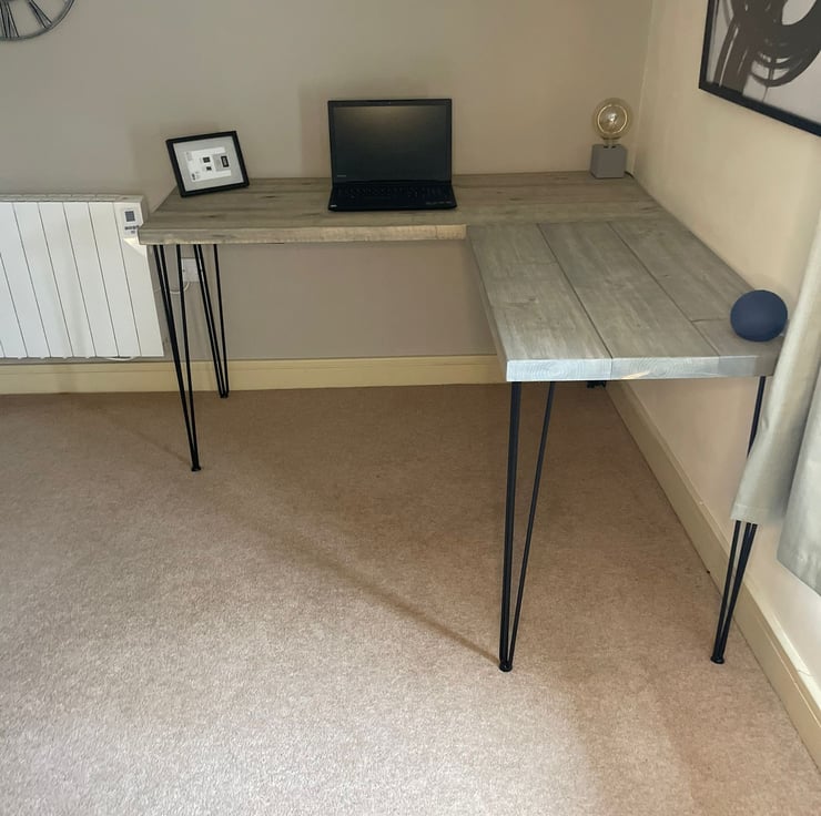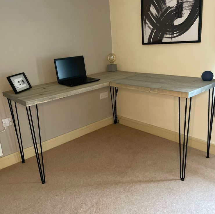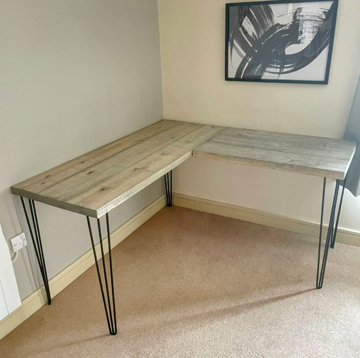 Solid Wooden Corner Table, Corner Office Desk, Computer Desk Home, Rustic Boards With Hairpin Legs Gaming Desk, Two Boards Industrial Look Wide Desk