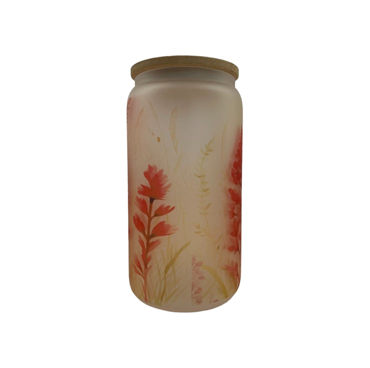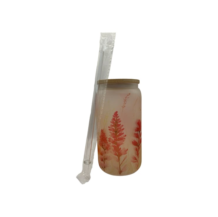 Elevate your beverage experience with our exquisite glass drinking jar, beautifully adorned with a charming red wildflower design. This glass is not just a functional item; it is a statement piece that adds a touch of elegance to any setting. The delicate floral pattern brings a sense of freshness and vibrancy, making it perfect for both casual gatherings and special occasions. The lid ensures that your drinks stay fresh and free from contaminants, while the sturdy straw allows for easy sipping, making it an ideal companion for your favourite beverages, whether it's refreshing iced tea, smoothies, or infused water.