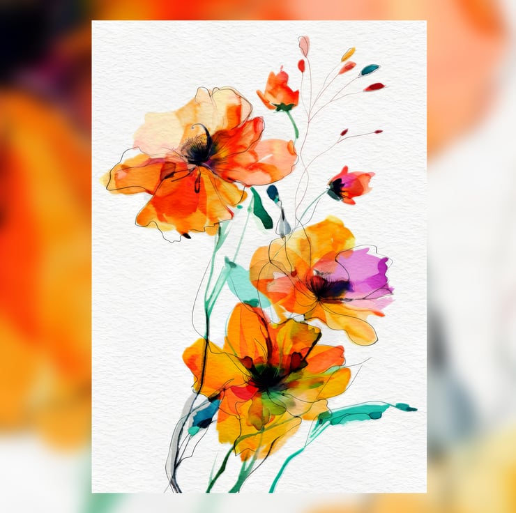 Furthermore, “Vibrant Florals in Watercolor” is more than just a painting; it’s a celebration of life and color. It can brighten up any space, making it an ideal addition to your home or office. Whether you hang it in your living room, bedroom, or workspace, it will undoubtedly add a touch of elegance and charm.