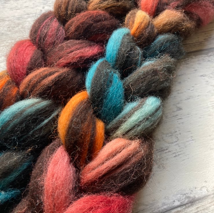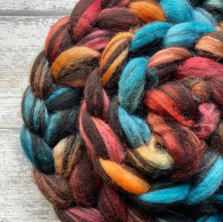 Corriedale wool is a medium natural coloured wool and the mix of brown and white in the humbug really makes colours pop.