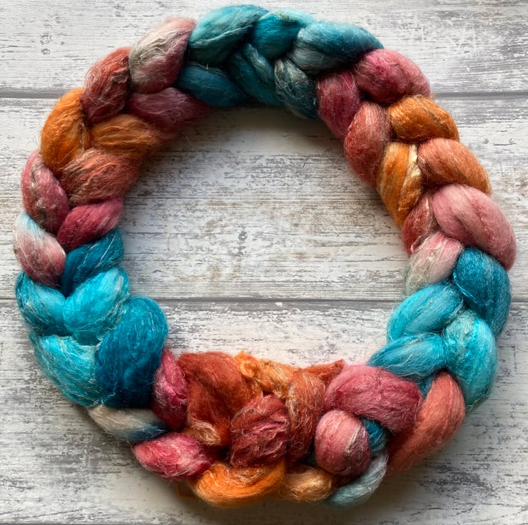 Approximately 100g hand dyed by me as shown.