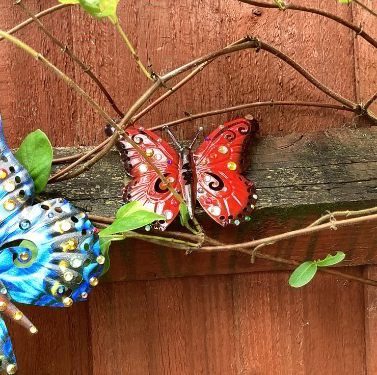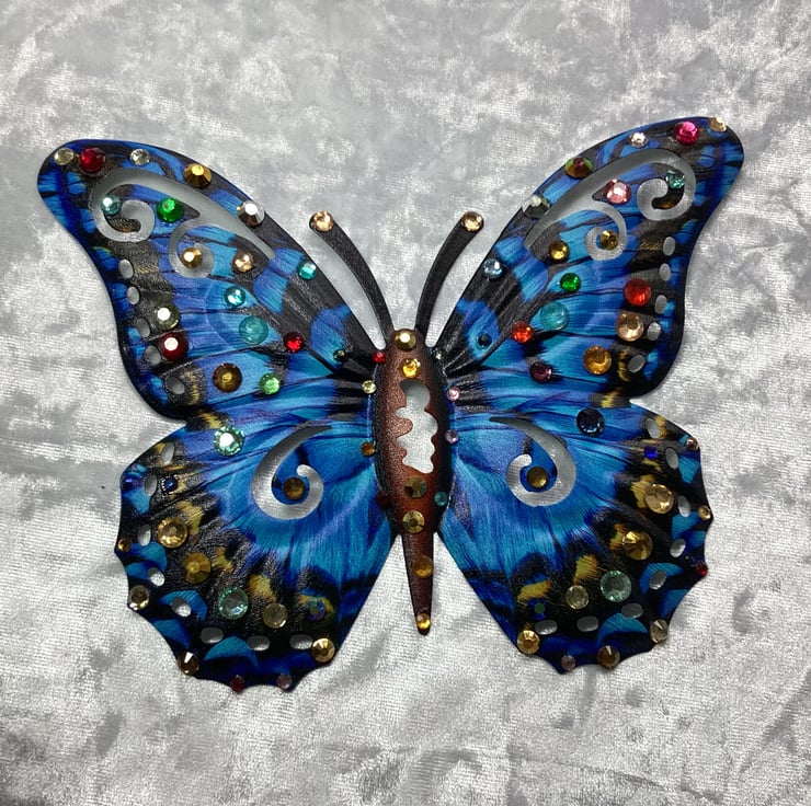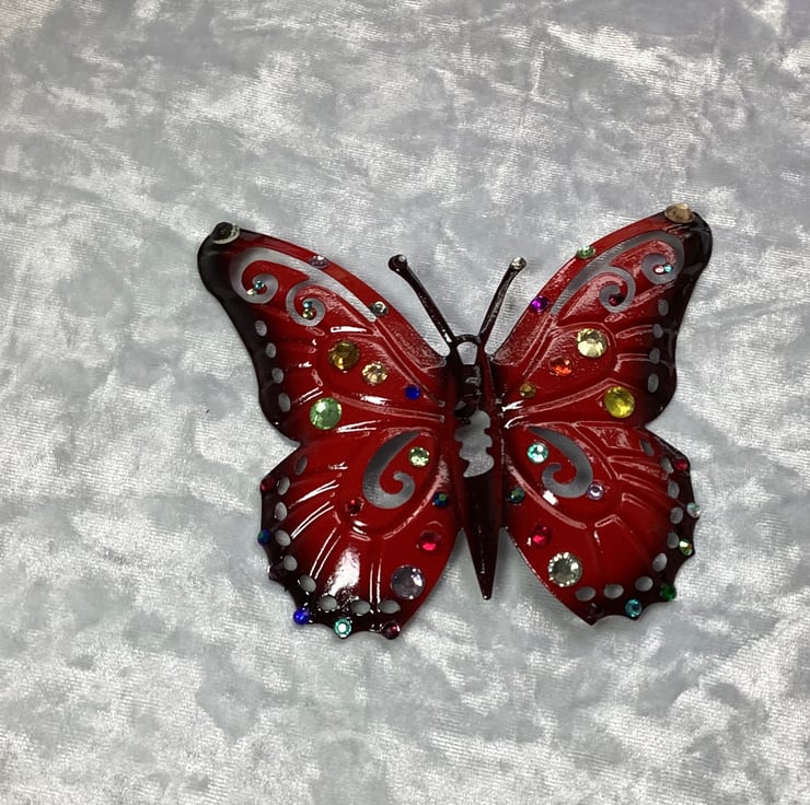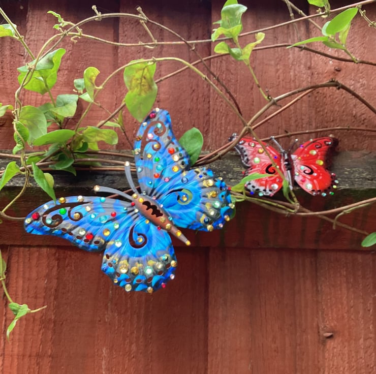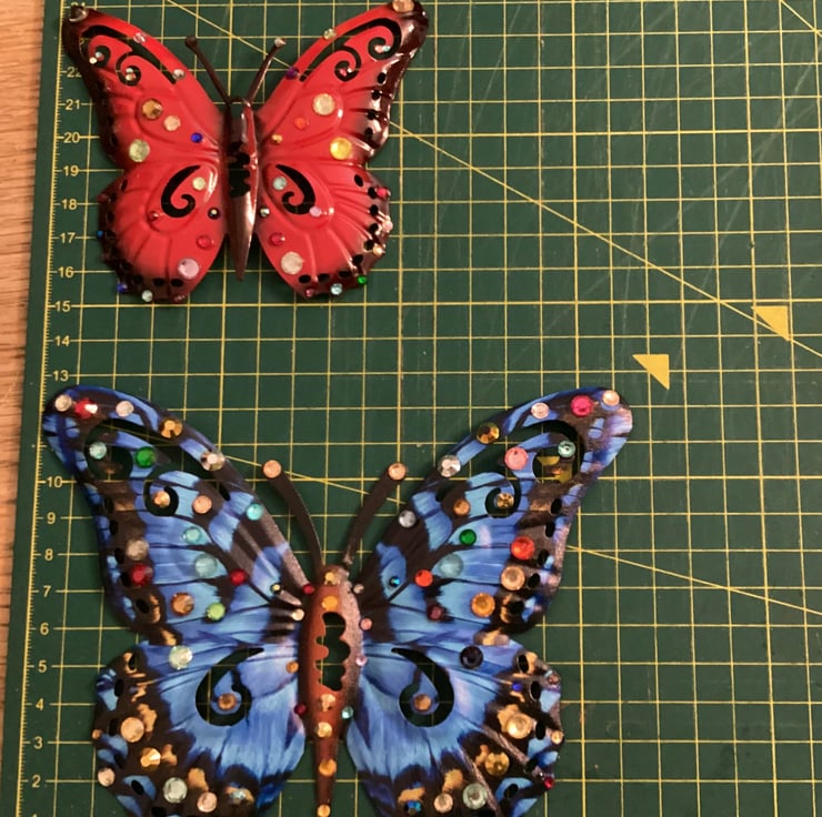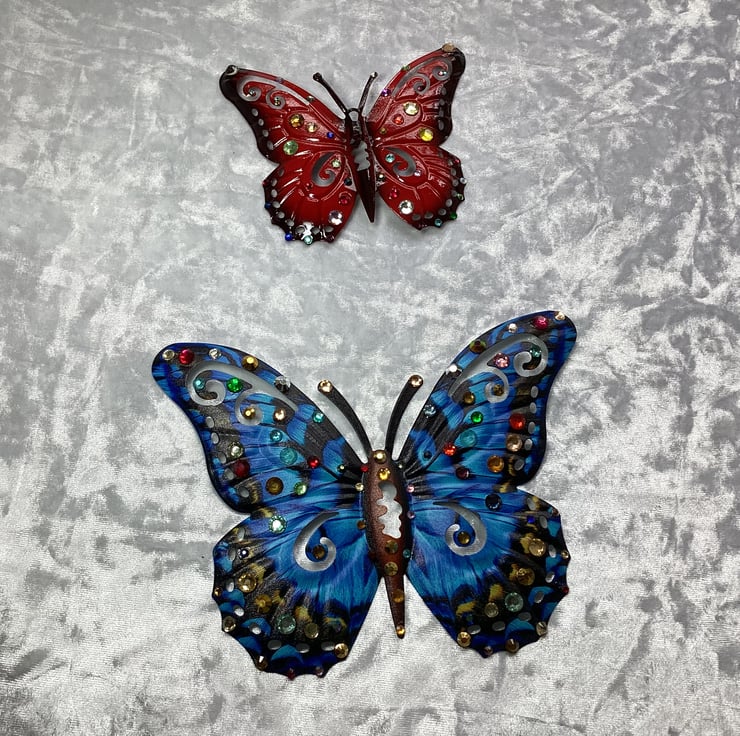 Handmade by me, in my home studio in West Midlands. I used 2 metal butterfly's garden decoration, embellished it with rhinestones diamanté in different colours and sizes .Make a great sun catchers in the garden. Measurements in cm . Hooks on the back. Colours may slightly vary due to the lighting during the photo shooting or the monitor's display.