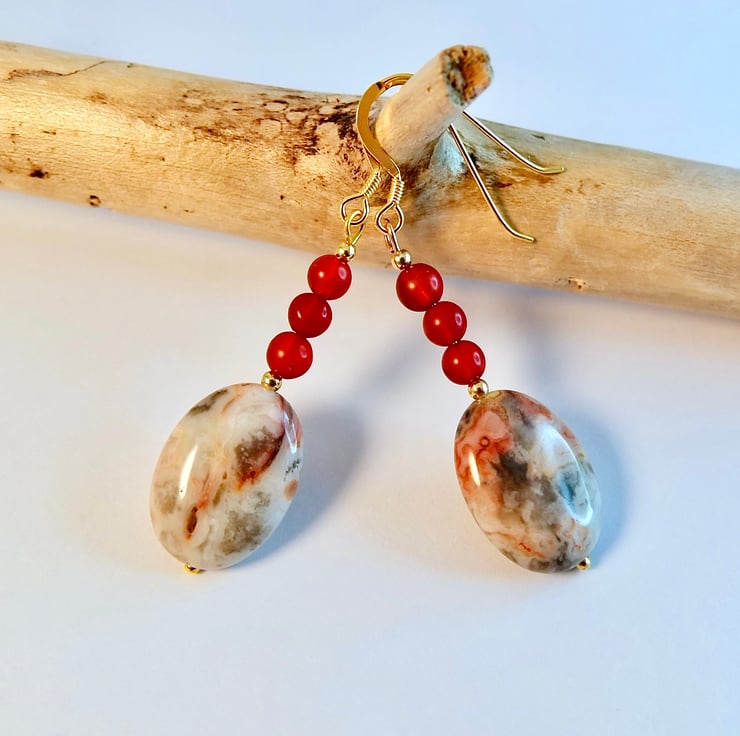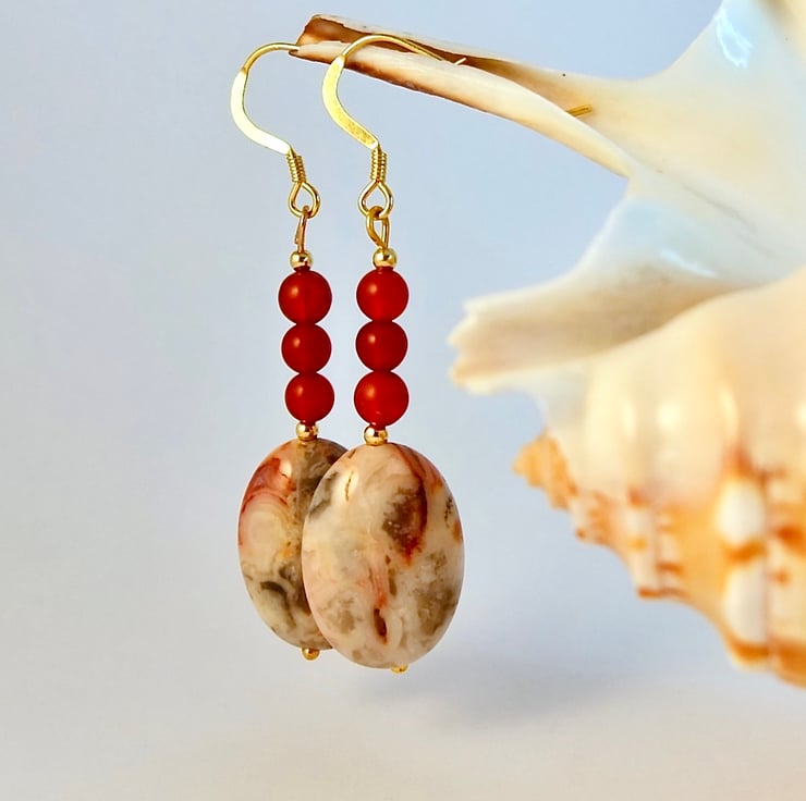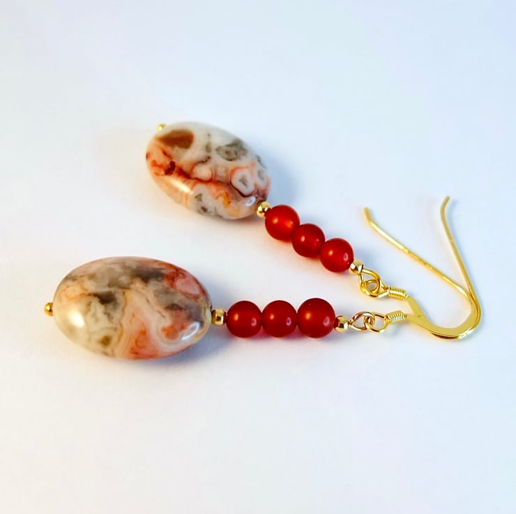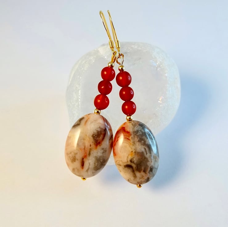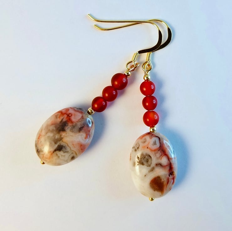 Crazy Lace Agate & Carnelian Earrings - Handmade Gift, Birthday, Anniversary