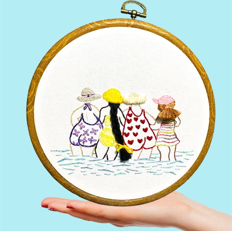I have other beach themed hoops on this theme available, please check them out or buy the set for a beach themed display. Each individual image is done in a complementary colour range and with assorted stitches for a unique effect. They represent equality and body confidence.