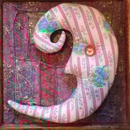 Hand stitched with vintage buttons, ephemera, fabric, trims and finds.