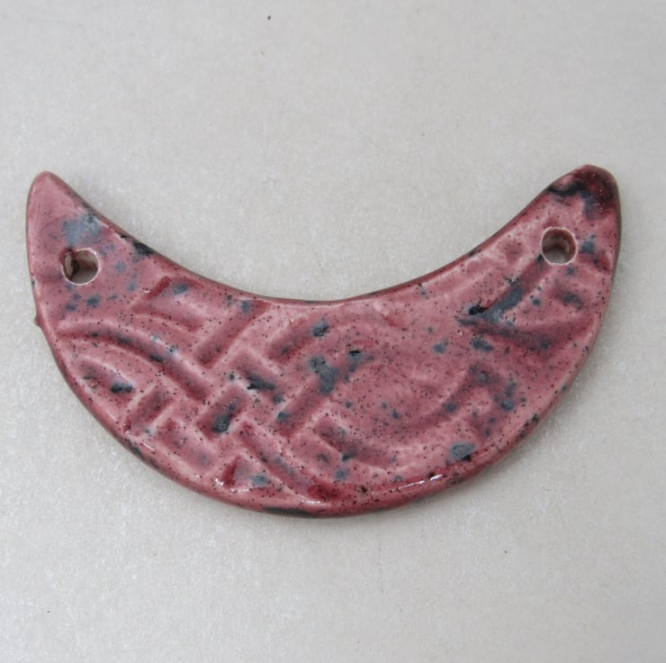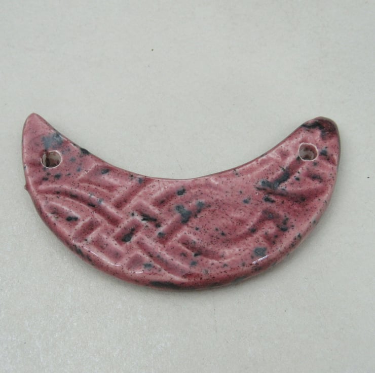 Stoneware ceramic bib pendant patterned with celtic knotwork.