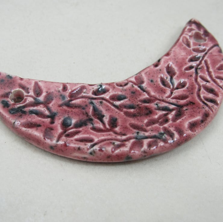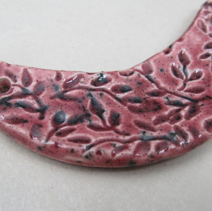 Speckled Rose Leaf Pattern Ceramic Crescent Bib Pendant