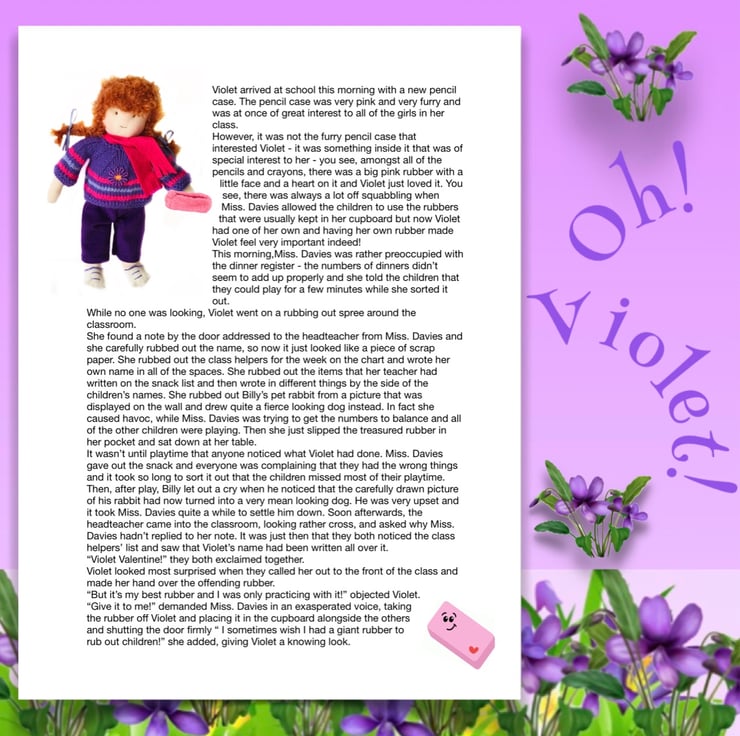 There are other children in Maisy’s class at Mulberry Green Infants’School - Violet, Billy, Amber, Rose, Ruby, Marigold, Tilly, Amelia and twins Oliver and Olivia. The children are all 28cm tall, Baby Daisy is 16cm and Molly the dog is just 8cm. Maisy and Mo love nothing more than having adventures with their friends.