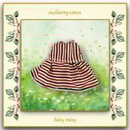 A unusual little dress in a grape harvest print, to fit the Mulberry Green characters. The dress is made from best quality cotton and has a Peter Pan collar and a lined bodice.