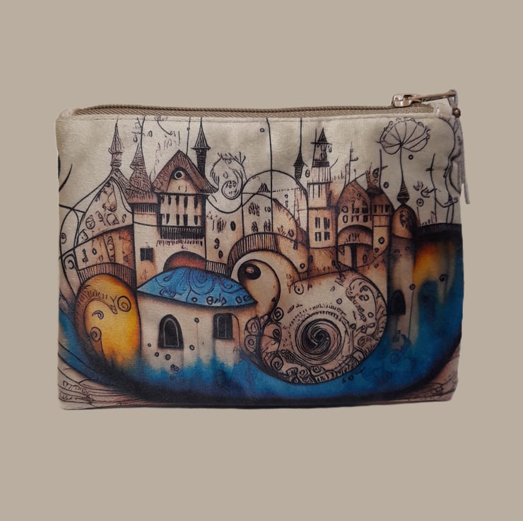 Abstract design pouch,Printed Make up bag,Plush pouch,Zipped bag,