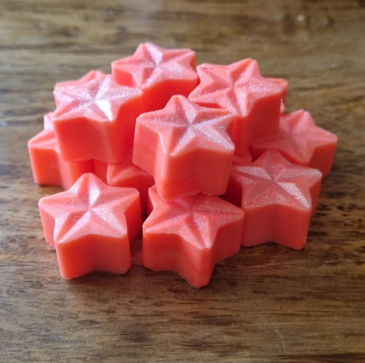 Each bright oange star measures a petite 2.5cm x 2.5cm x 1.5cm, and is the perfect size for adding straight to your wax melter and is suitable for using in either a traditional tealight melter or an electric melter.