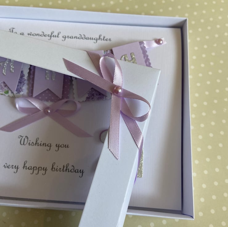 The card comes with the matching embellished gift box shown in the photographs.