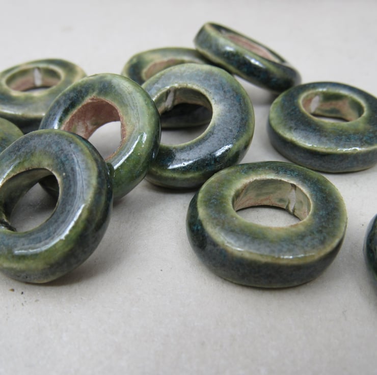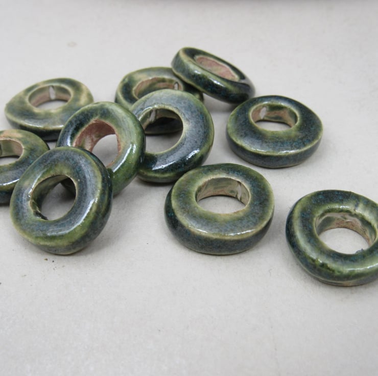 10 chunky donut beads in white stoneware