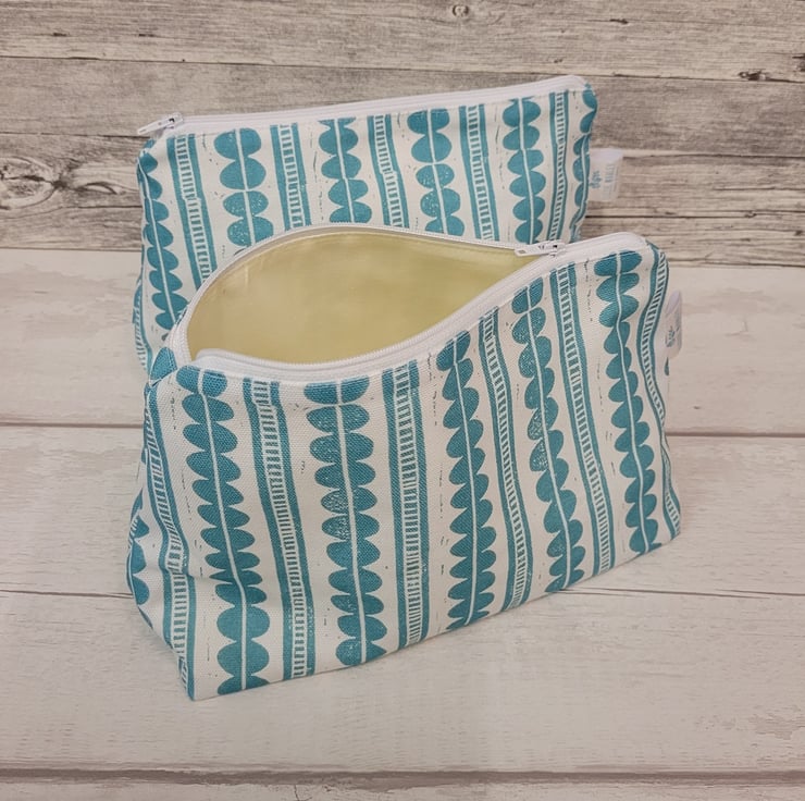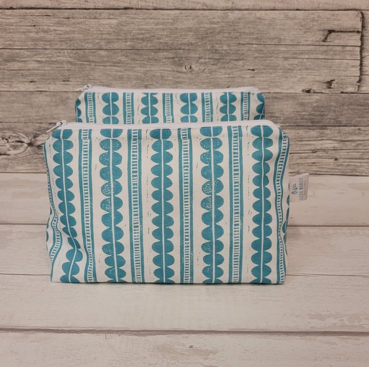Pretty little zipped cosmetic bag made in my Blue Henry stripe fabric.