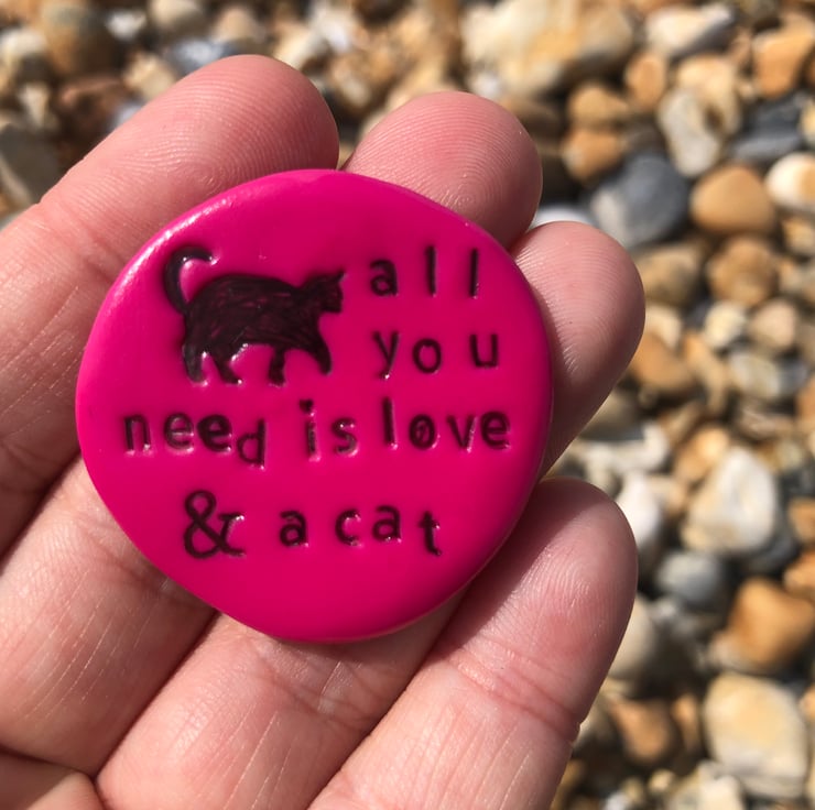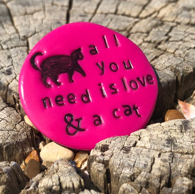 All You Need is Love and a Cat Pocket Pebble Gift for Animal Lover