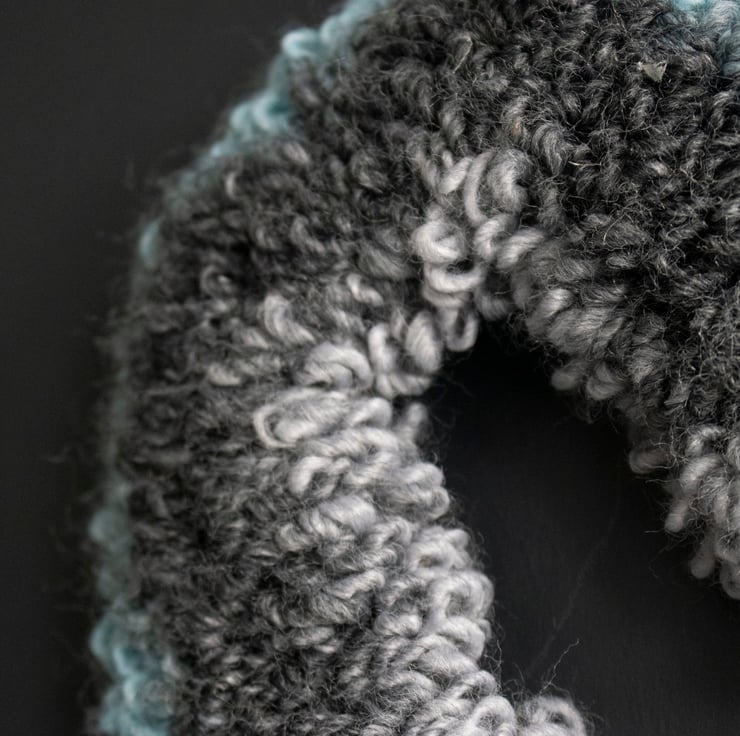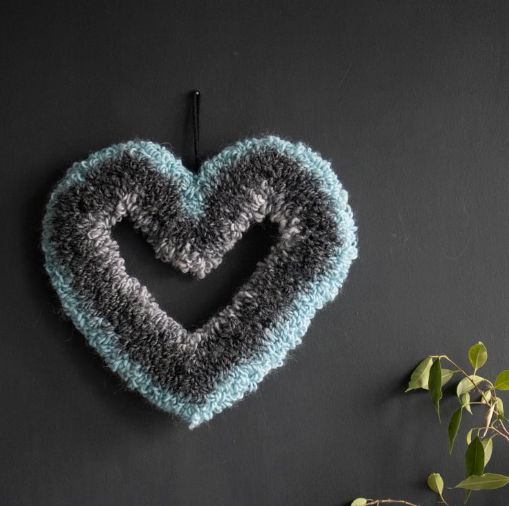 Add a soft, handcrafted touch to your space with this beautiful heart-shaped wreath, made using the needle punch technique. Featuring an eye catching gradient of blue to black, the fluffy, looped wool yarn creates a gentle and textured finish that feels as cozy as it looks.