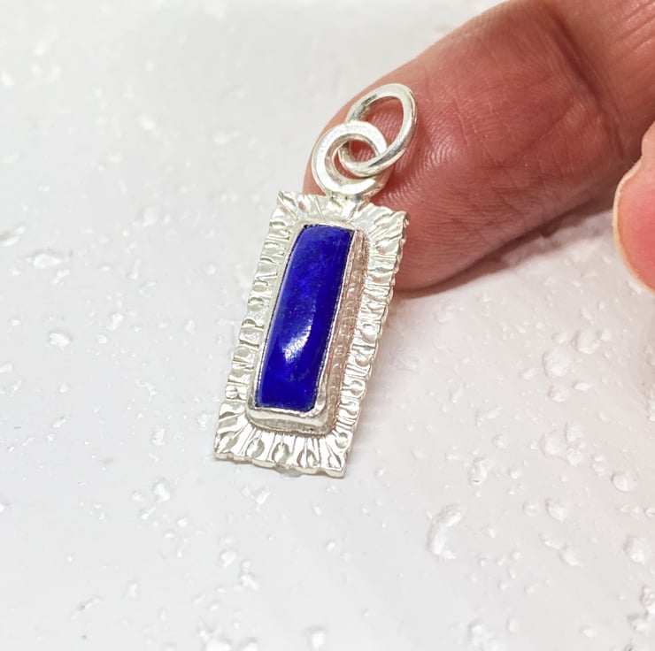 Lapis lazuli has been set into sterling silver and finished with a unique texture.