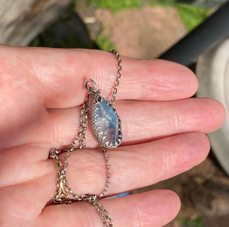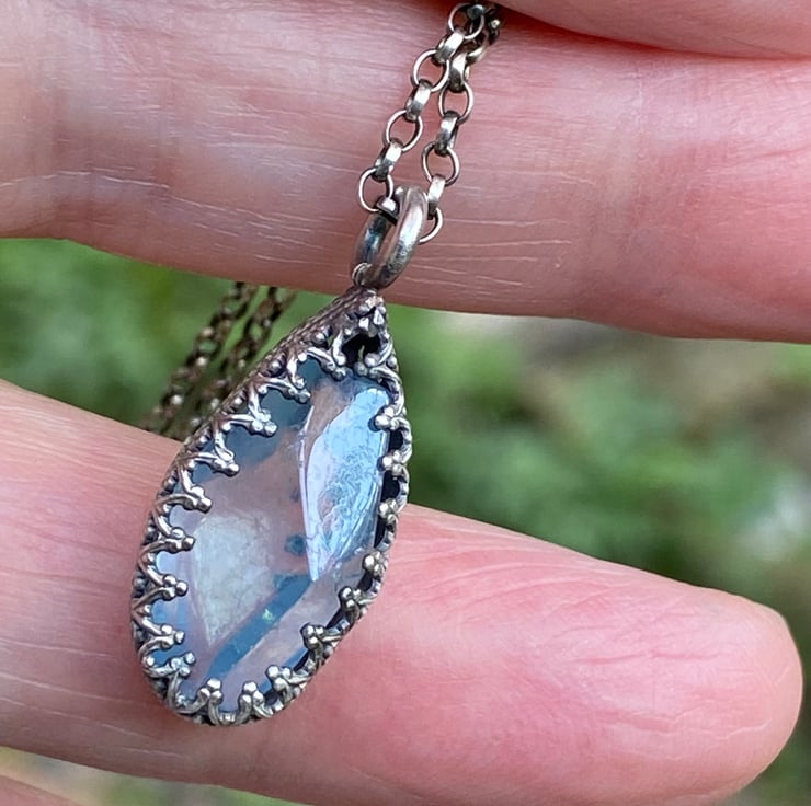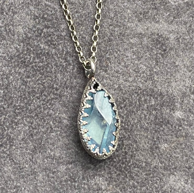 Natural faceted Aquamarine gemstone set in a sterling silver collar and suspended on an 18inch sterling silver chain .