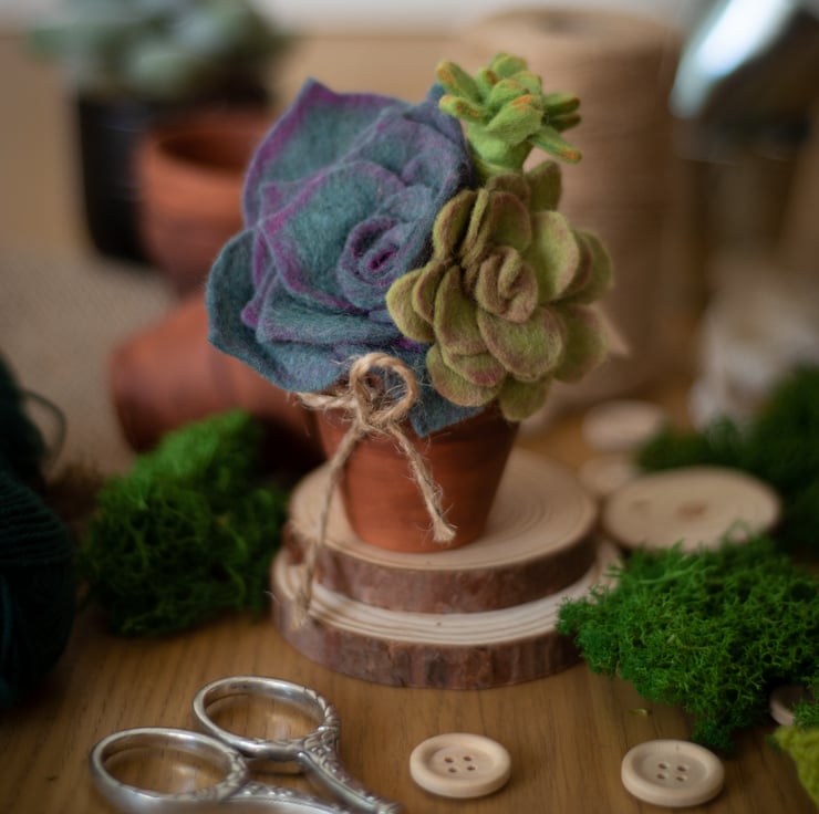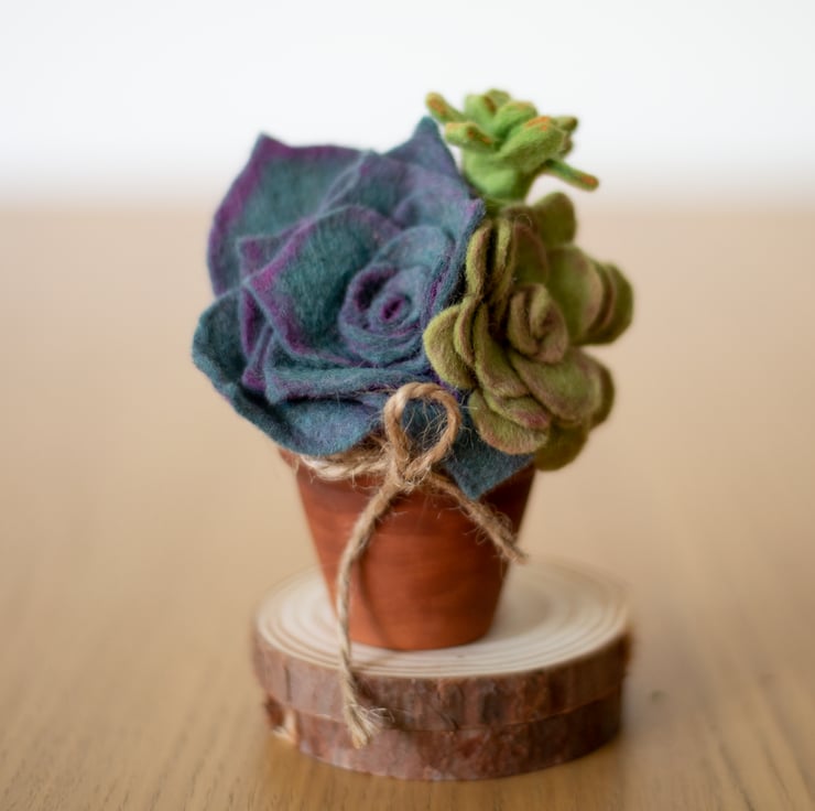 Bring the tranquility of a mossy stone garden indoors with this handcrafted miniature felt succulent. Nestled snugly in a petite terracotta pot, its soft green leaves evoke resilience and low-maintenance elegance. Perfect for plant lovers seeking a touch of nature without the fuss! Cheerful desk companion, unkillable plant that doesn't need any help to stay fabulous.