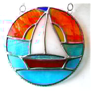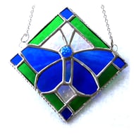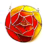 This is a stained glass suncatcher made using the Tiffany copper foil technique.