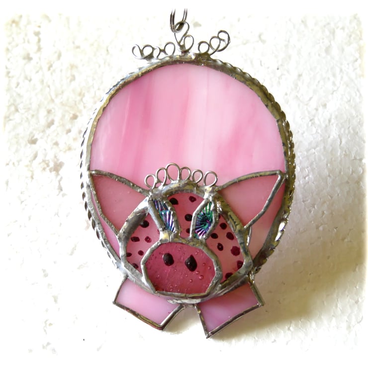 A silver coloured little chain is securely attached to the top of the pig with a little ring to hang it.